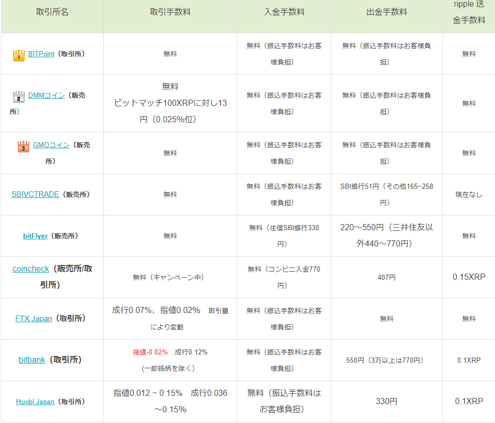 (リップル手数料比較ページ参照)